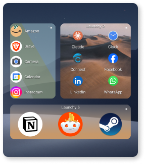 Launchy Widget is a companion widget to Launcher Two that extends its functionality with customizable folders.