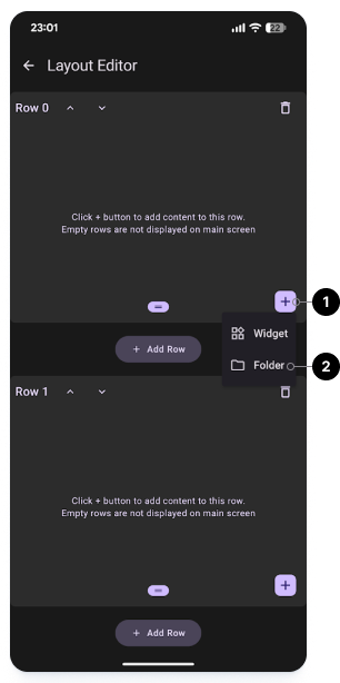 Each row of the main screen becomes like a canvas where you can add widgets and arrange them as you like.